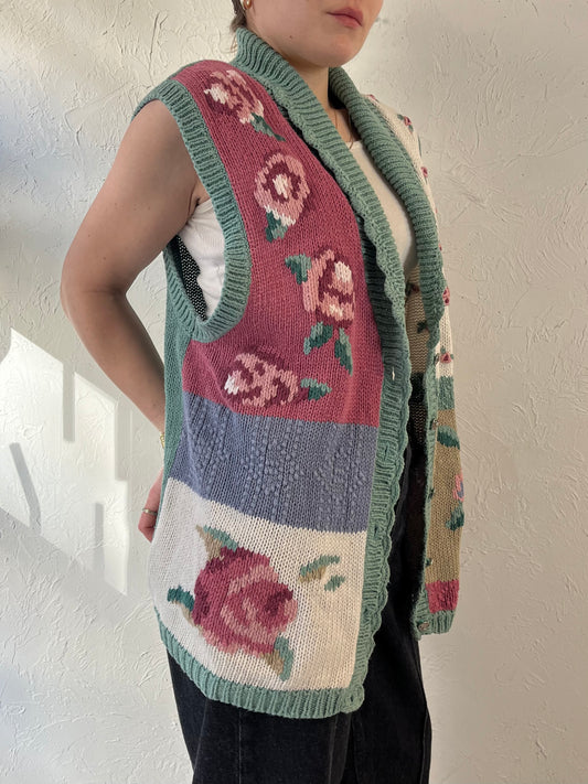 90s ‘Gina Peters’ Floral Knit Vest / Large