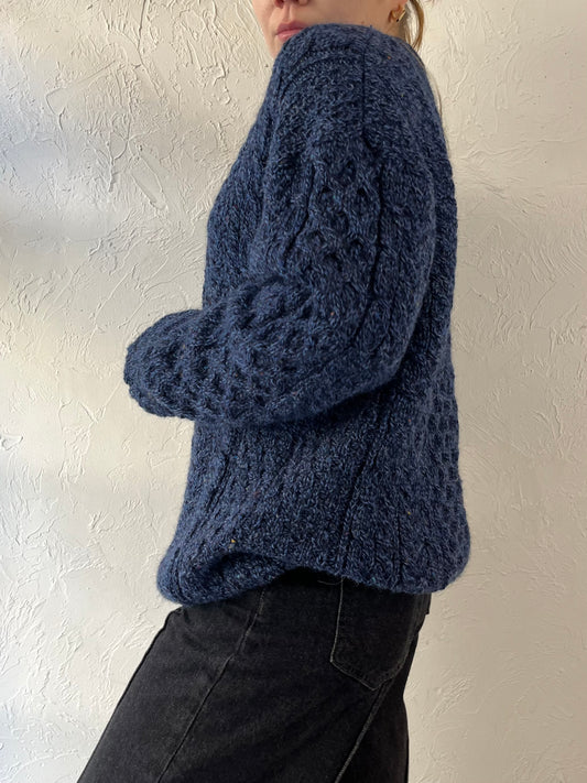 90s ‘Avoca’ Blue Cable Knit Sweater / Small