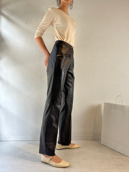 90s ‘G 3’ Black Leather High Waisted Pants / Small