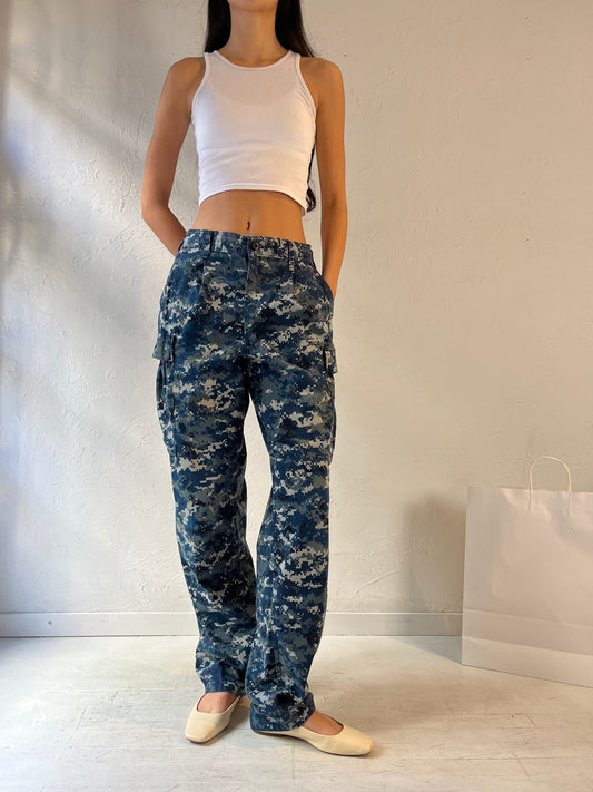 Vintage Authentic Army Blue Camouflage Cargo Pants / Small