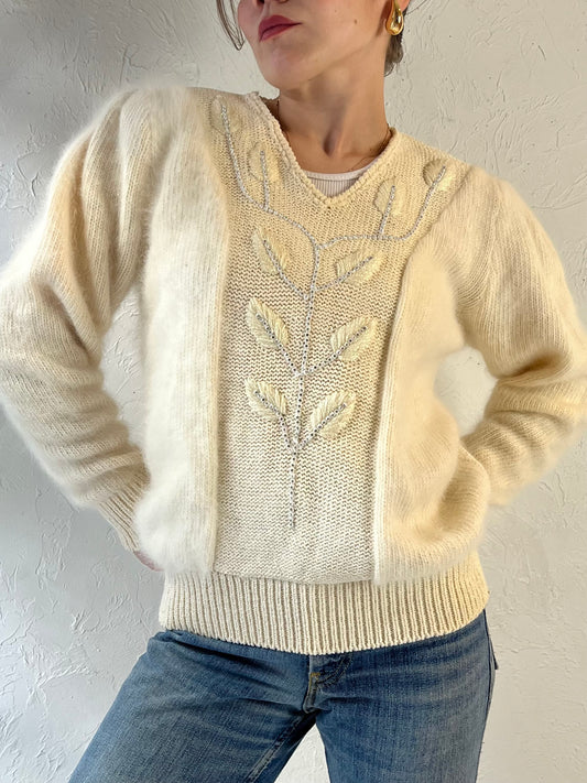 90s ‘Eugenia’ Cream Rhinestone Sweater / Medium