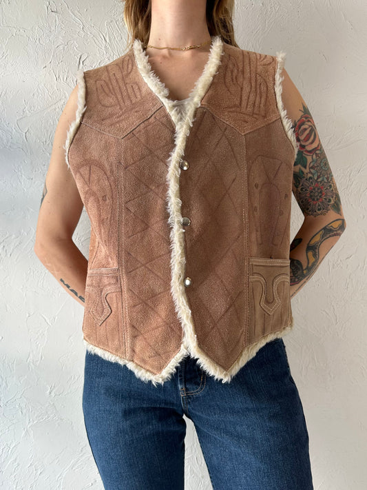 Vintage 'Genuine Leather' Embossed Suede Faux Fur Lined Vest / Large