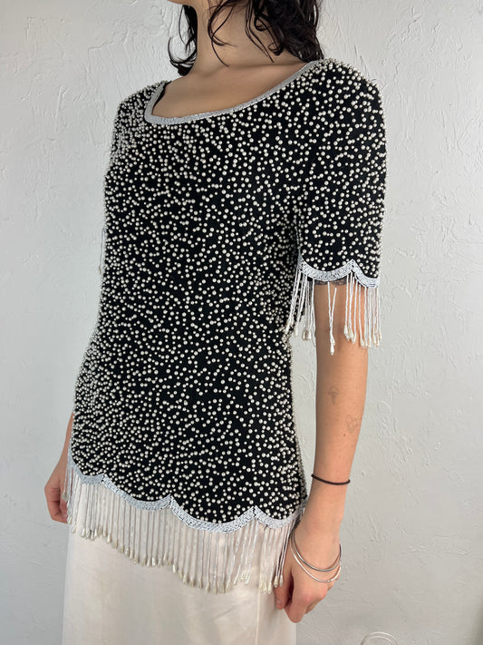 90s ‘Laurence Kager’ Black Beaded Silk Blouse / Small