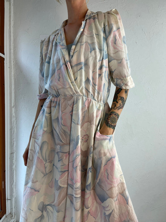 80s does 50s 'Smartset' Purple Floral Fit and Flare Party Dress / Medium