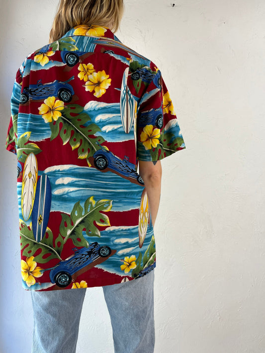 90s ‘RJC’ Hot Rod Topical Print Cotton Dress Shirt / Small