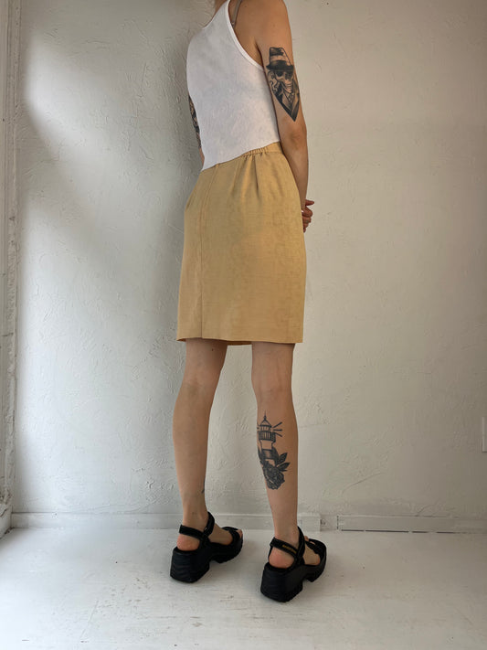 90s 'Danier' Navy Blue Suede Leather Form Fitting Dress / XS
