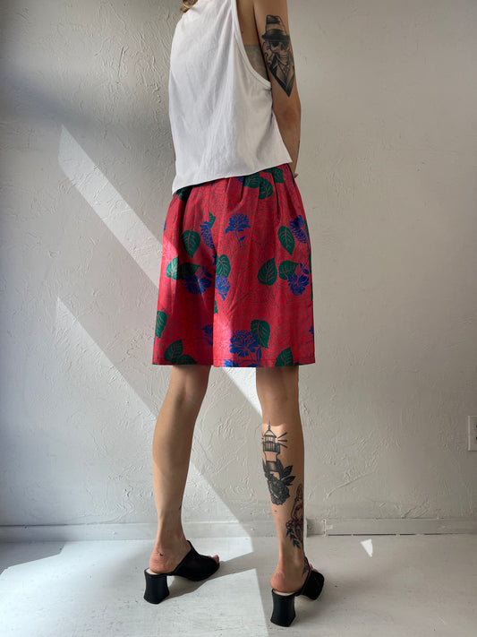 80s does 50s 'Regatta Sport' Orange Cotton Hawaiian Floral Print Full Circle Skirt / Medium