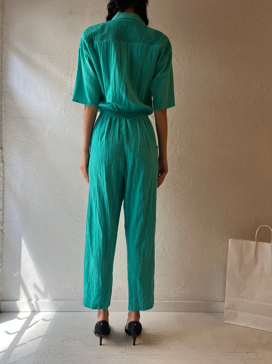 90s ‘Sea Suns’ Teal Collared Jumpsuit / Medium