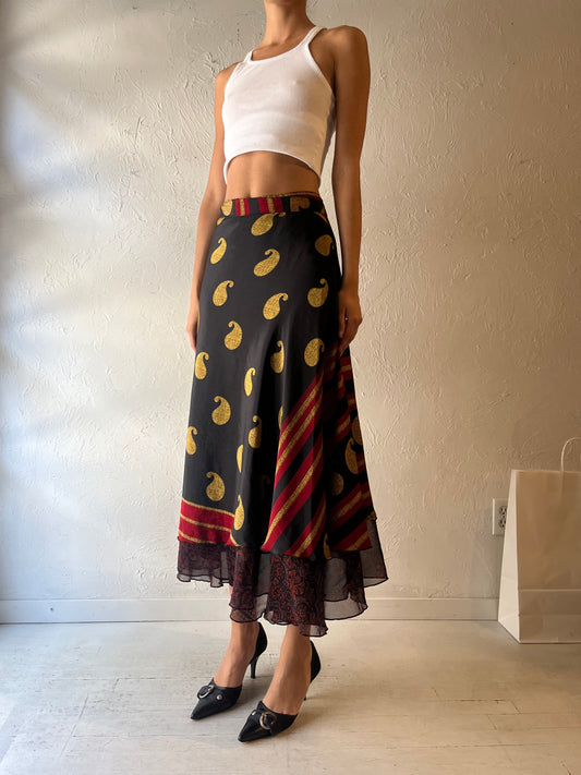 90s 'Maple Clothing' Reversible Patterned Wrap Skirt / Large