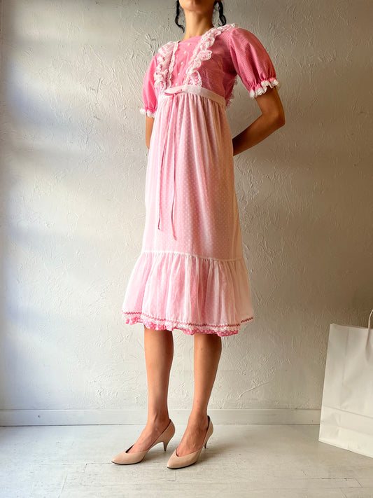 70s ‘Genway’ Pink Puff Sleeve Dress / Small