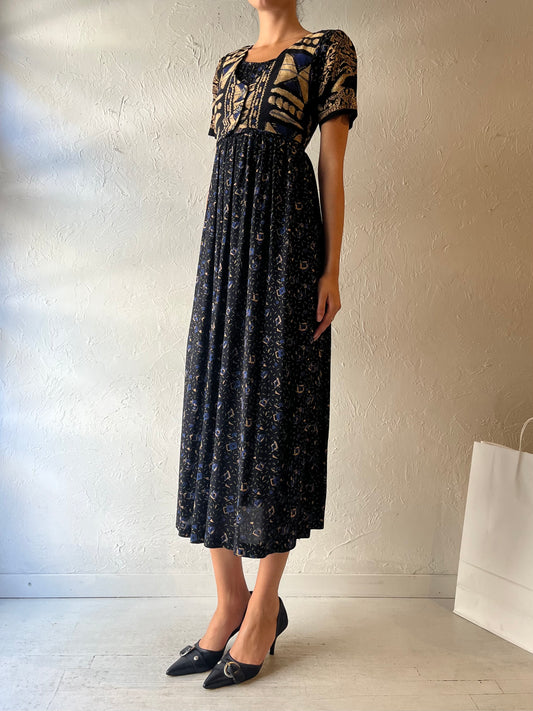 90s ‘Carol Little’ Abstract Patterned Maxi Dress / Small