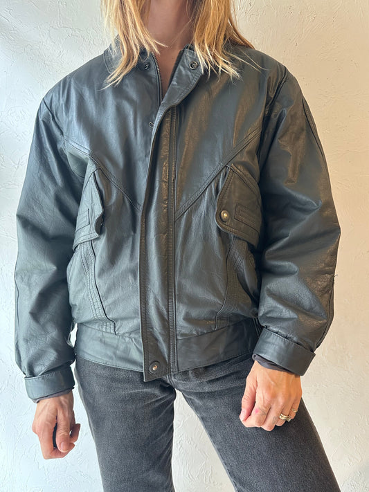 90s ‘Boulevard Club’ Gray Leather Bomber Jacket / Medium