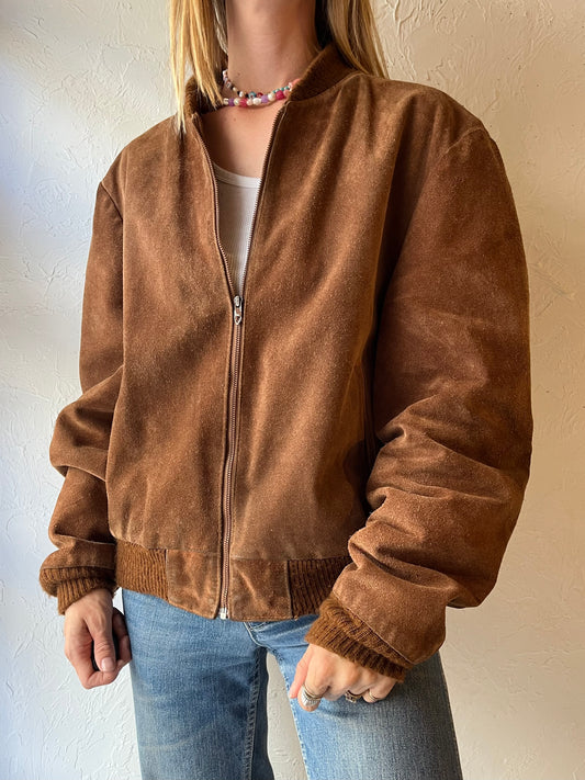 80s ‘Genuine Leather’ Brown Suede Leather Bomber / Medium