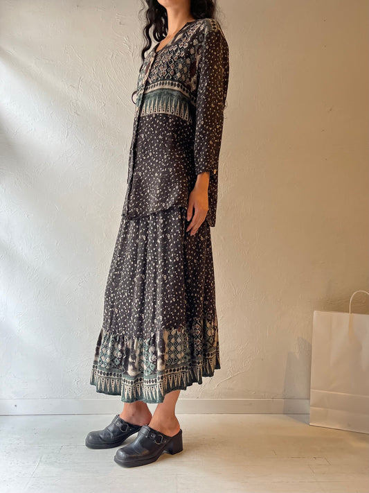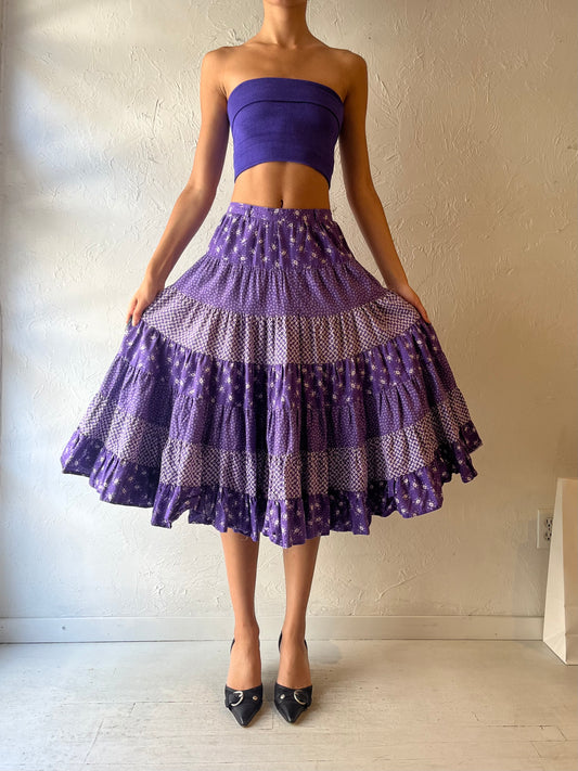 Vintage Handmade Purple Cotton Western Midi Skirt / Small