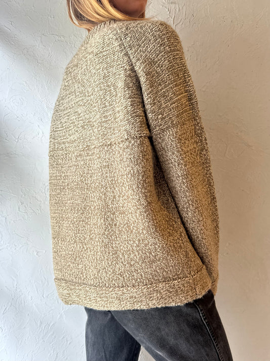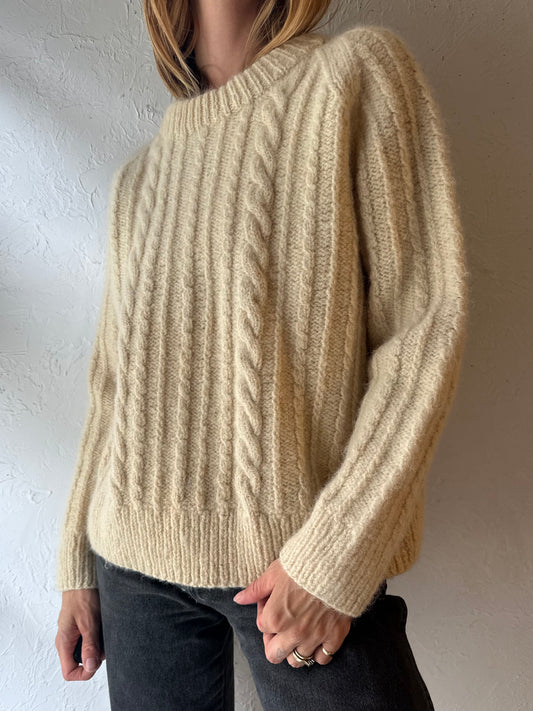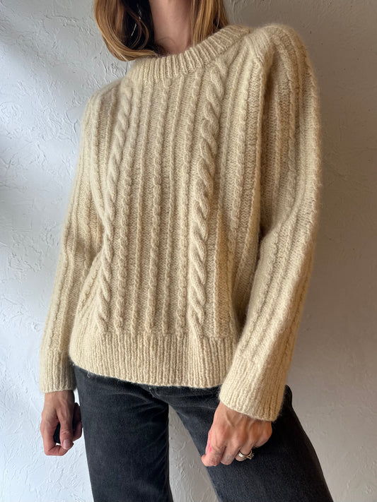 Vintage ‘Island Crafts’ Cream Wool Cable Knit Fisherman’s Sweater / Small