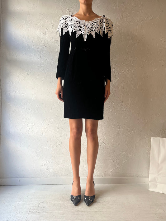 70s ‘Nu Mode’ Black Velvet Mini Dress / Small