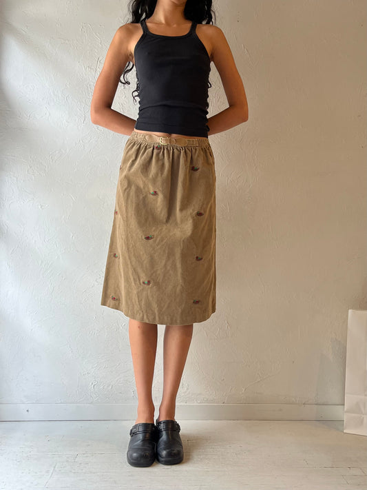 Vintage 'Cherry Hill' Beige Corduroy Duck Midi Skirt / Small