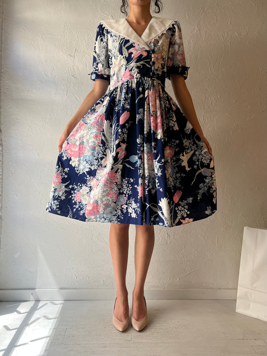 80s ‘Tina Barrie’ Collared Floral Print Midi Dress / Small