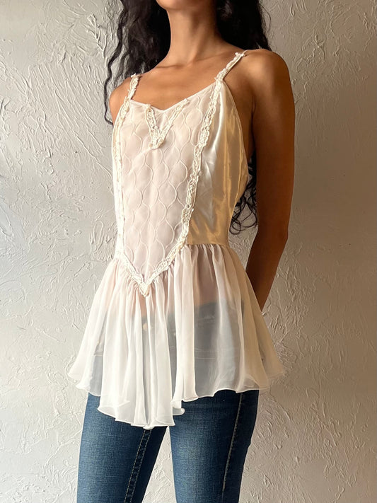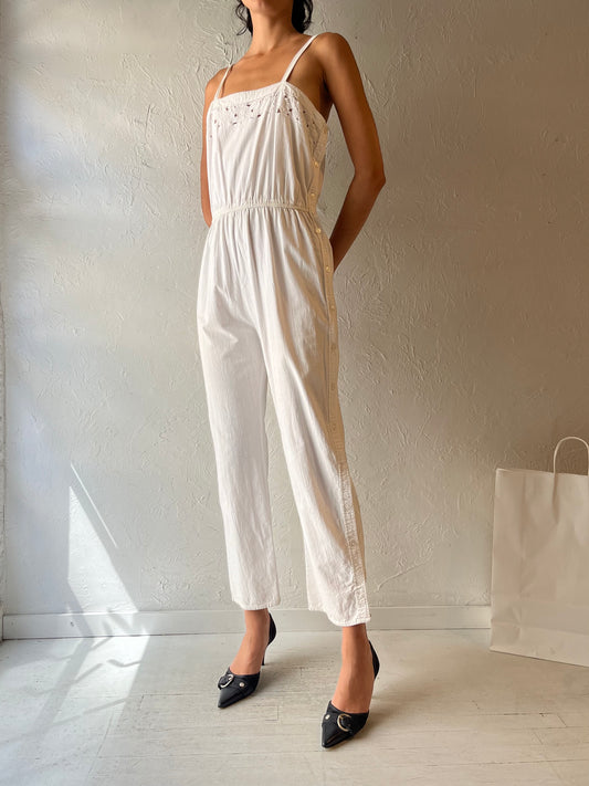 70s 'Marianne' White Cotton Jumpsuit / Small