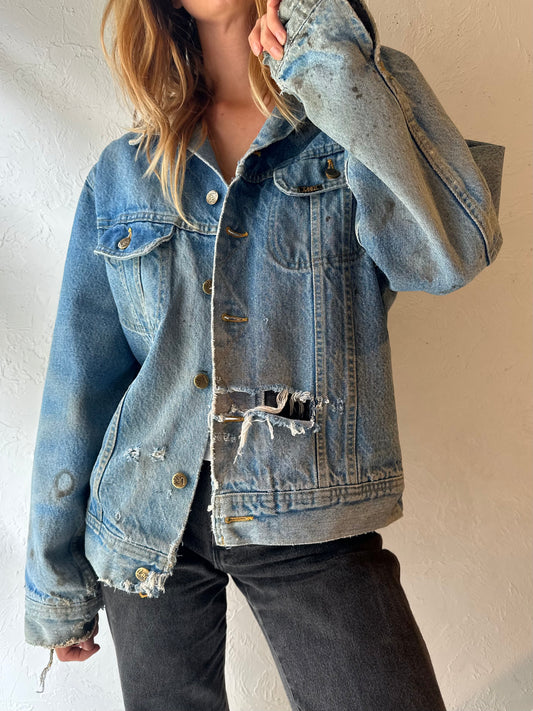 80s ‘Stormrider’ Thrashed Blanket Lined Denim Jacket / Large