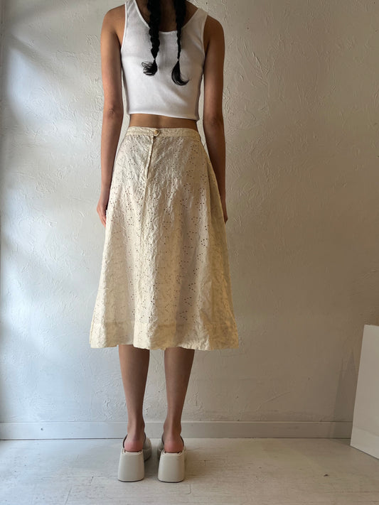 Vintage Cream Eyelet Butterfly Print Midi Skirt / Small