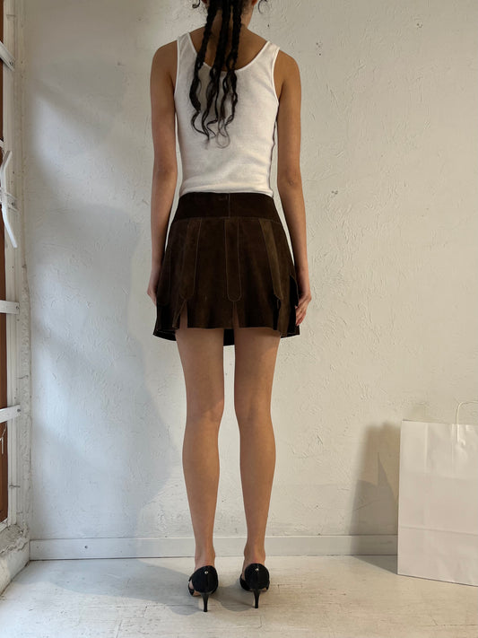 70s Brown Suede Leather Mini Skirt / Small