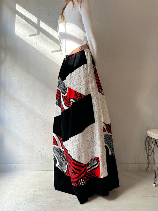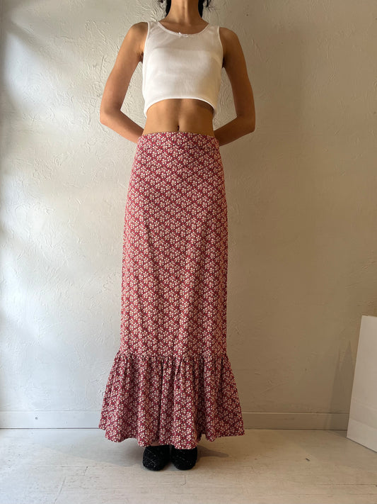 Vintage Handmade Red Floral Print Maxi Skirt / Medium