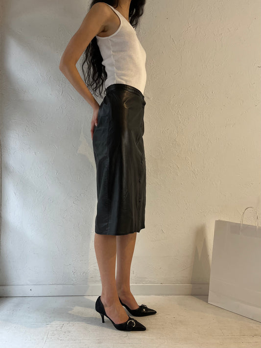 90s Black Leather Pencil Skirt / Small
