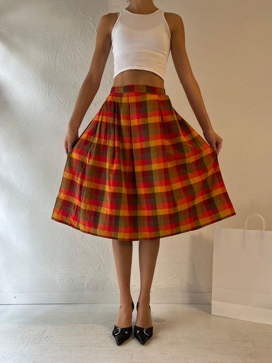 Vintage Red Plaid Midi Skirt / Small