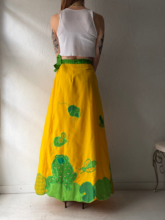 70s 'Alfreds Wife' Yellow Frog Novelty Wrap Skirt / Small