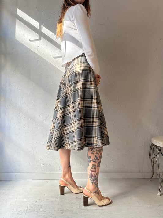 Vintage Handmade Plaid Wool Midi Skirt / XS