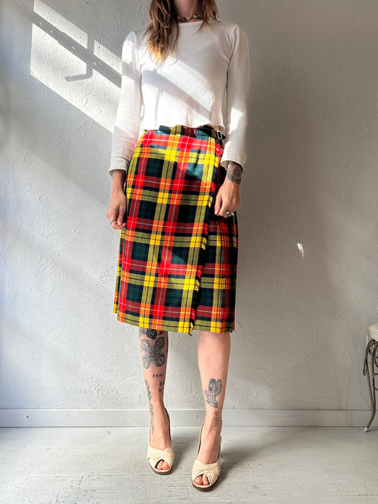 70s Plaid Wool Midi Skirt / XS