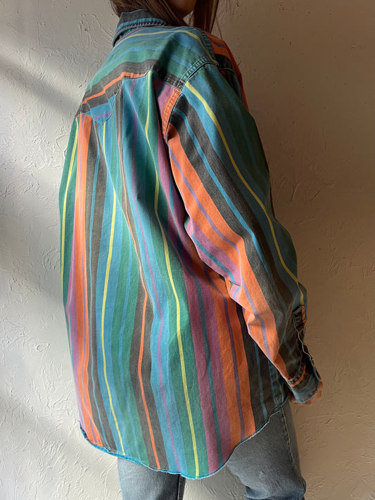 90s ‘Wrangler’ Rainbow Striped Thick Cotton Western Shirt / Large