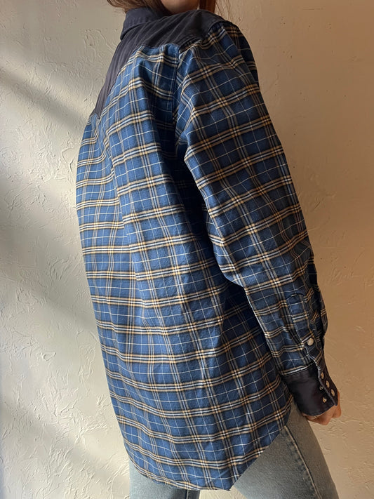 90s 'Ralph Lauren' Blue Plaid Cotton Button Up Shirt / Large