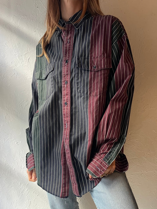 Y2k 'Ralph Lauren' Striped Button Up Shirt / Large