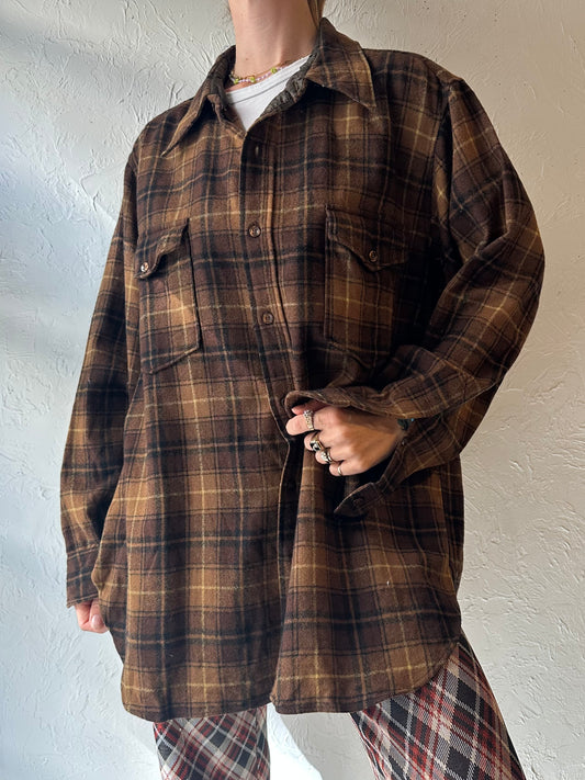 90s 'Pendleton' Brown Plaid Wool Shirt / Large