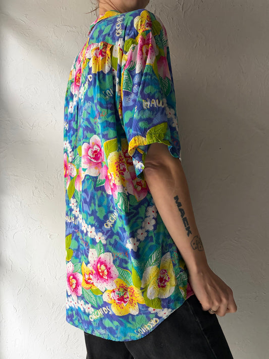 90s ‘Jams World’ Floral Print Shirt / Medium