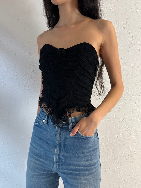 90s 'Florencia Fiume' Black Lace Strapless Bustier Top / Small