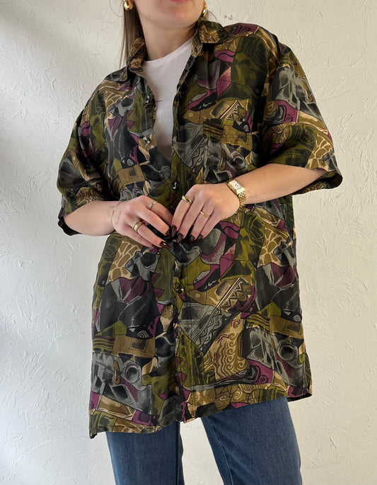 90s ‘Setosa’ Oversized Patterned Silk Blouse / Small