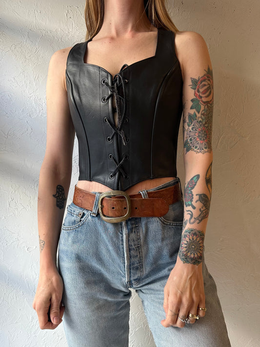 Y2k ‘Newport’ Black Leather Vest / Medium