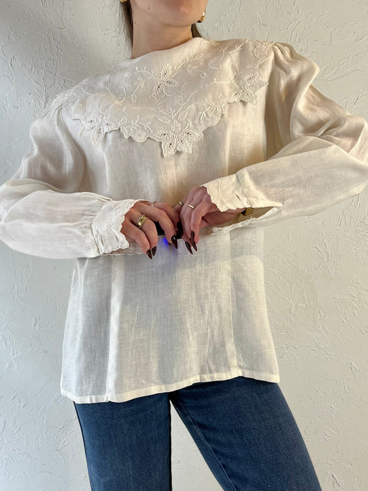 90s ‘La Chine’ Cream Linen Blouse / Small - Medium