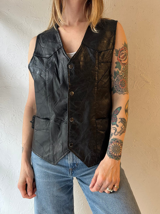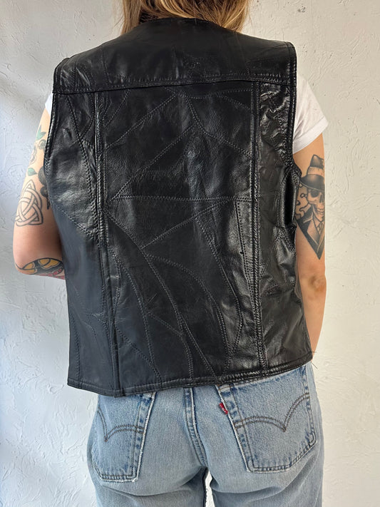 90s ‘American Unique’ Black Leather Patchwork Vest / Small