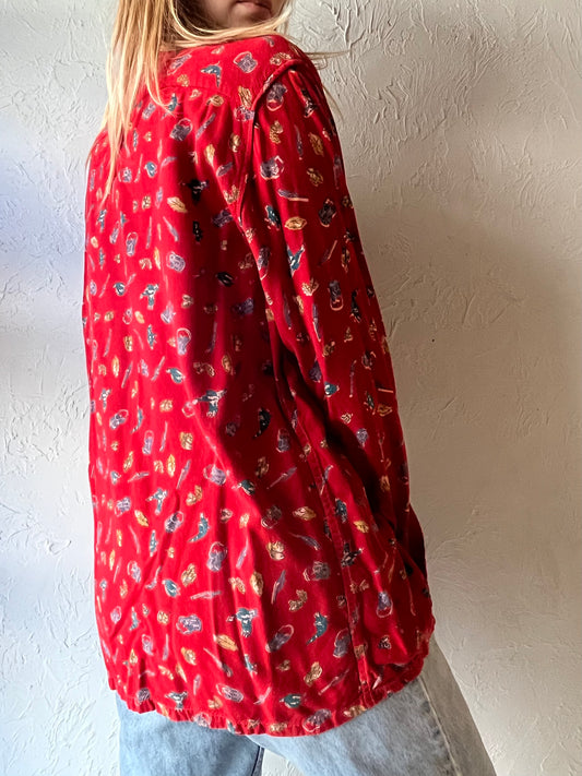 90s ‘Wrangler’ Novelty Print Button Up Western Shirt / Medium