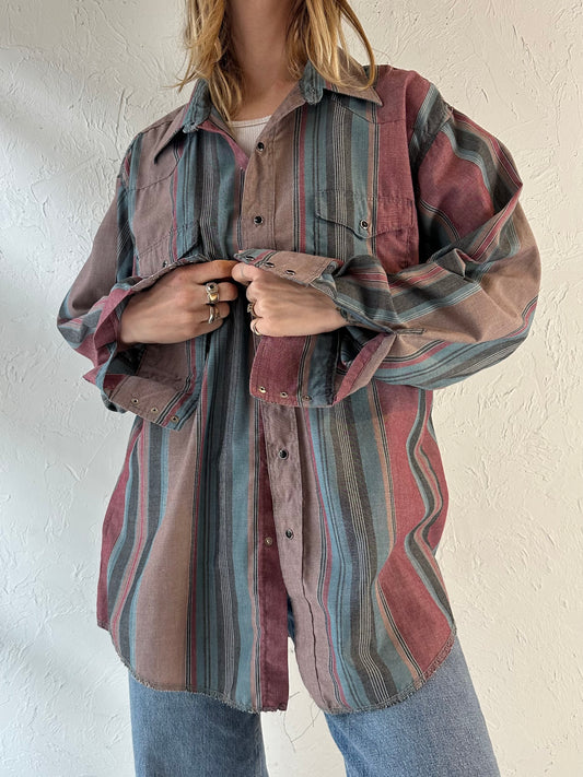 90s ‘Wrangler’ Striped Snap Up Western Shirt / Large