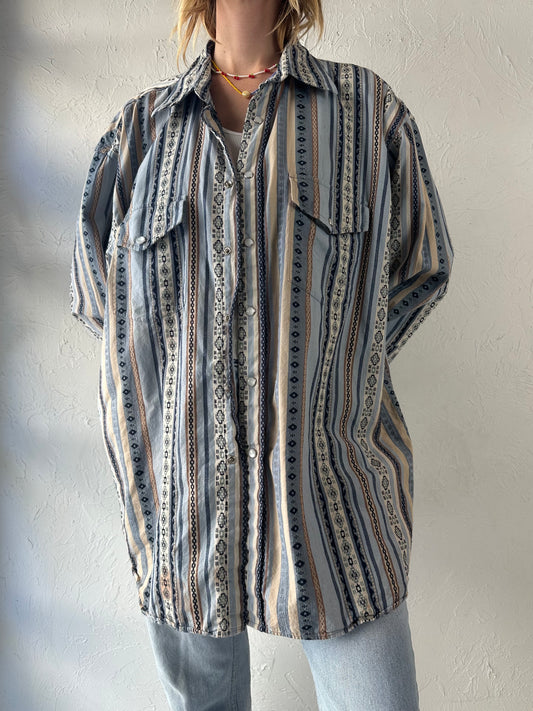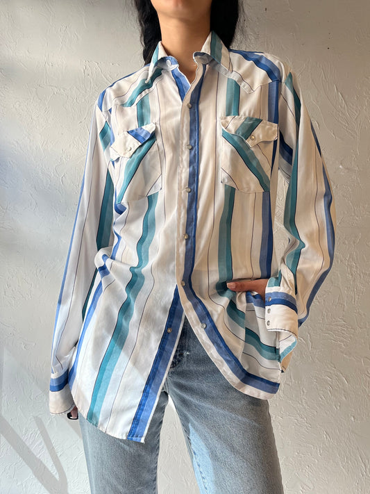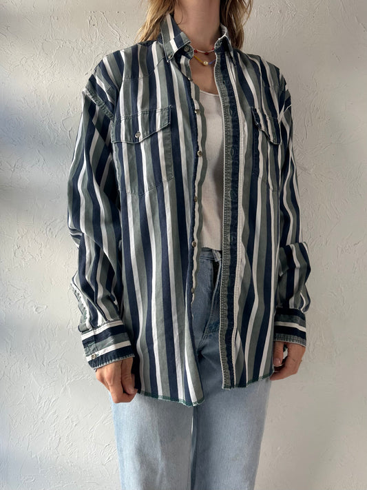 90s 'Wrangler' Striped Button Up Western Shirt / XL