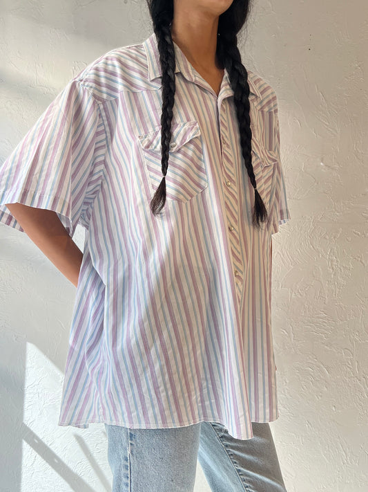 Vintage 'Wrangler' Striped Short Sleeve Pearl Snap Shirt / XL