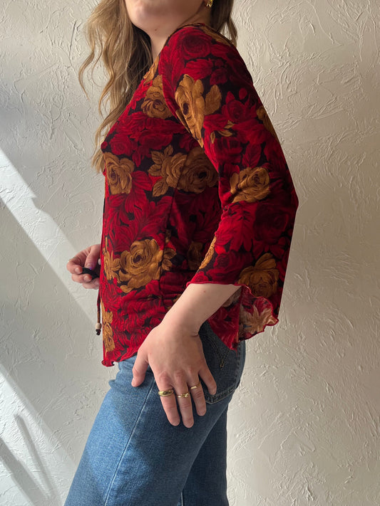 90s 'Susan Lawrence' Slinky Floral Top / Small
