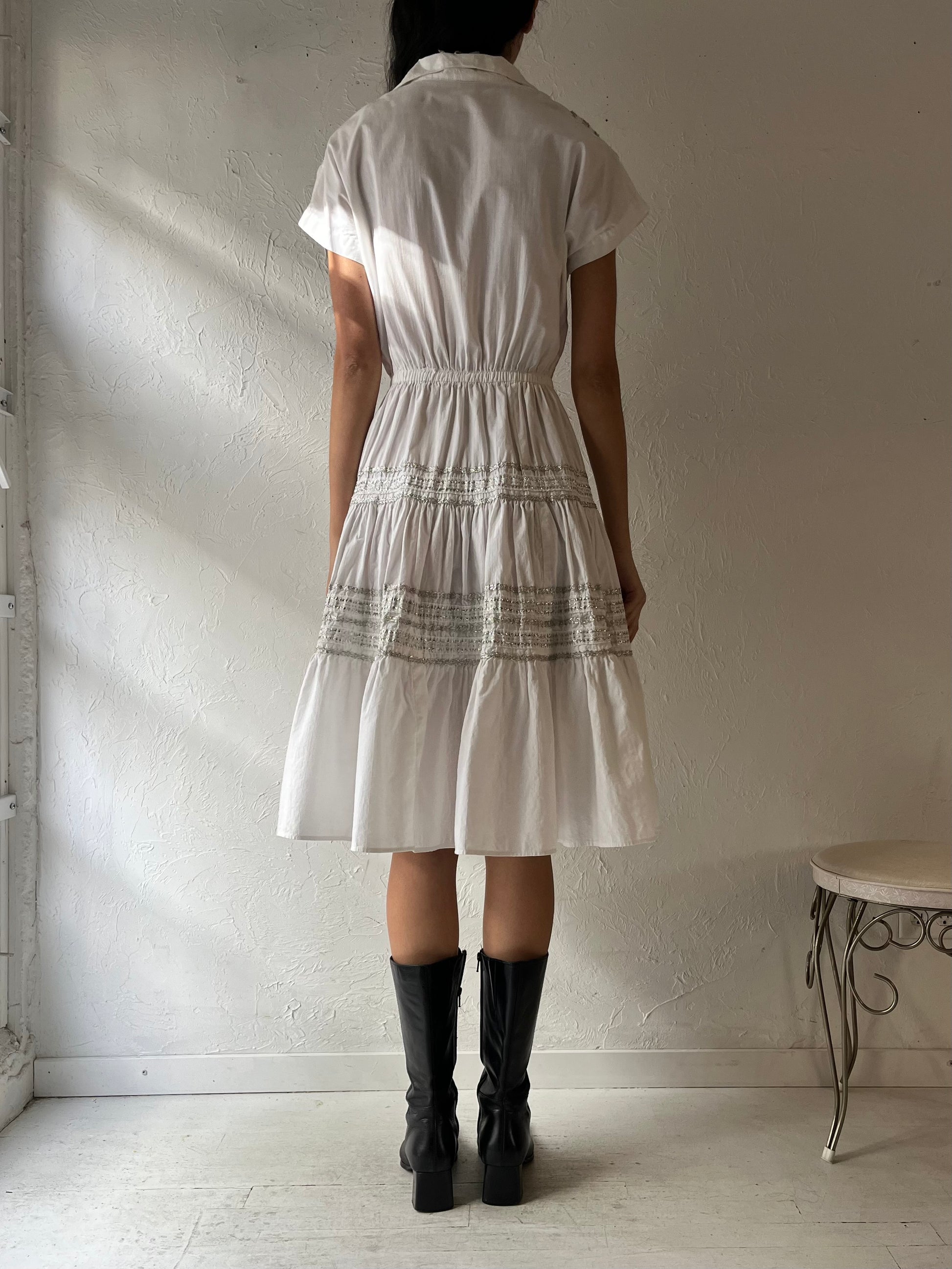 50s 60s ‘JC Penny’ White Western Dress / Small