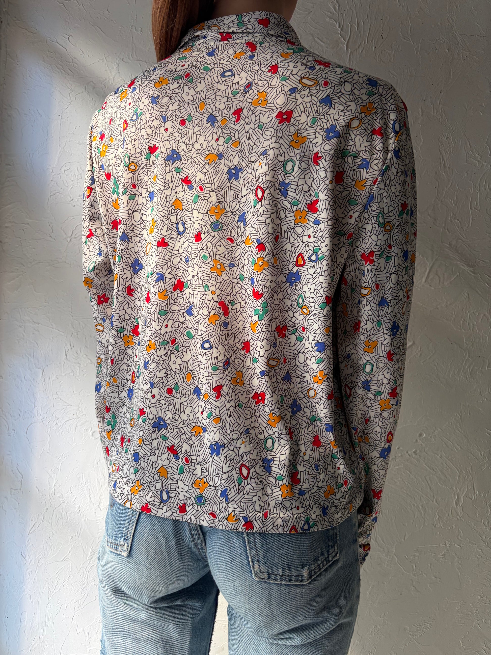 70s 'Blair' Floral Patterned Button up Shirt / Medium