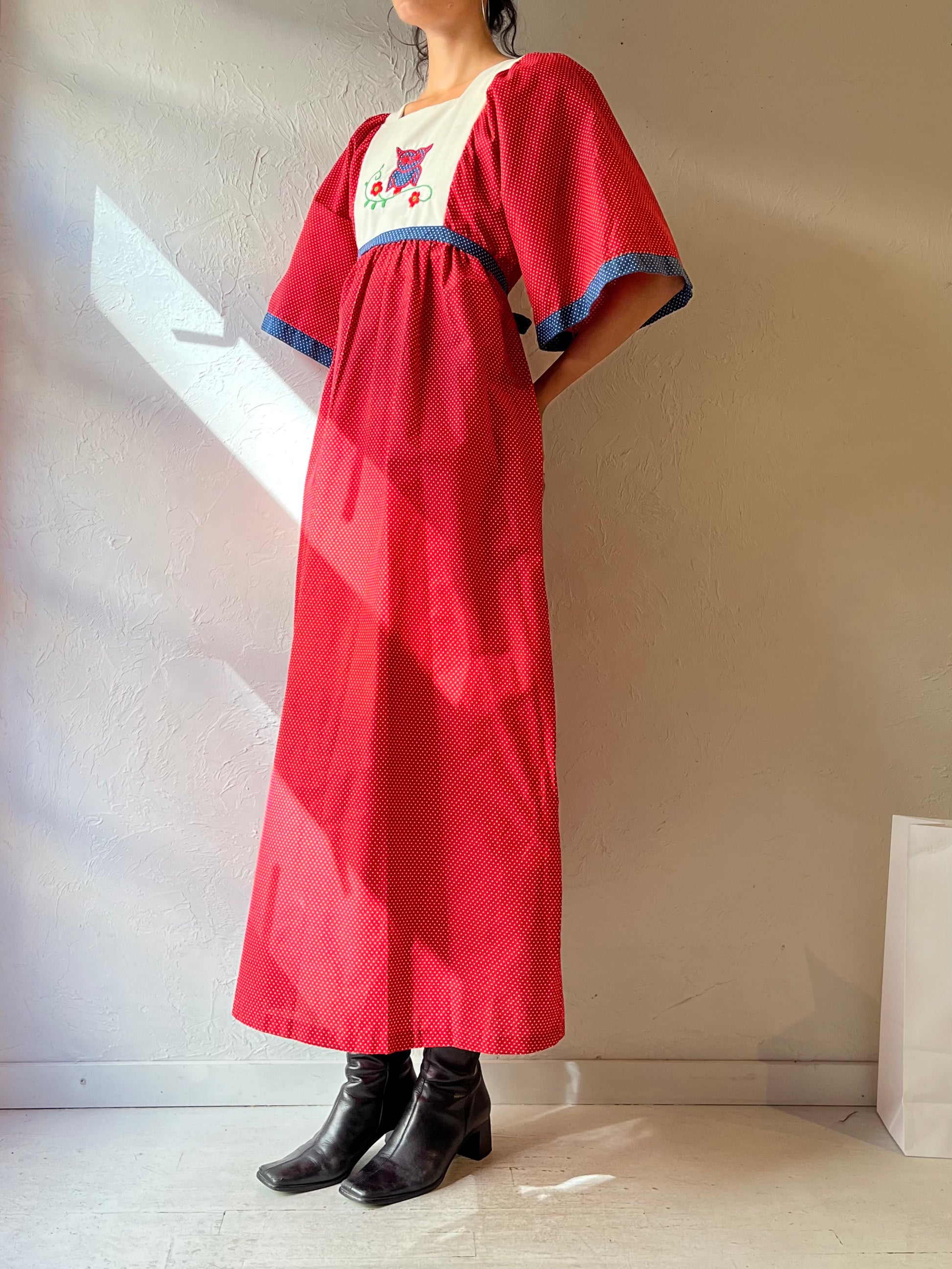 70s 'Danville' Red Polka-dot Union Made Maxi Dress / Small
